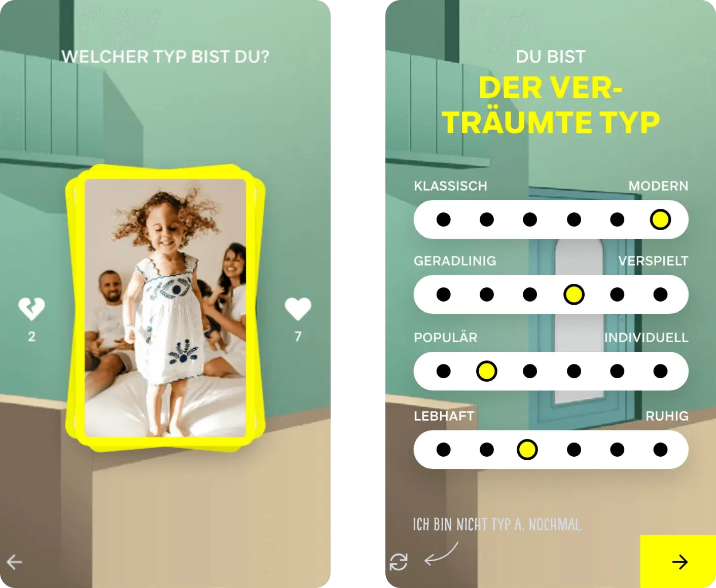 Im Rahmen des Konzepts wurden die unterschiedlichen Typen entworfen und die Logik der Typen-Ermittlung entwickelt. Bei der Gestaltung wurde auf ein bildlastiges, emotionales Konzept gesetzt, das im Look & Feel einer App umgesetzt wurde. Entsprechend wurde eine responsive-only-Website entwickelt. Über das umgesetzte Backend können Türmodelle, Texte und Motive gepflegt werden. Durch die Nutzung von interaktiven Gesten, wie wischen oder schütteln, sollen spielerische Anreize gesetzt werden. Unser Leistungsumfang besteht aus: